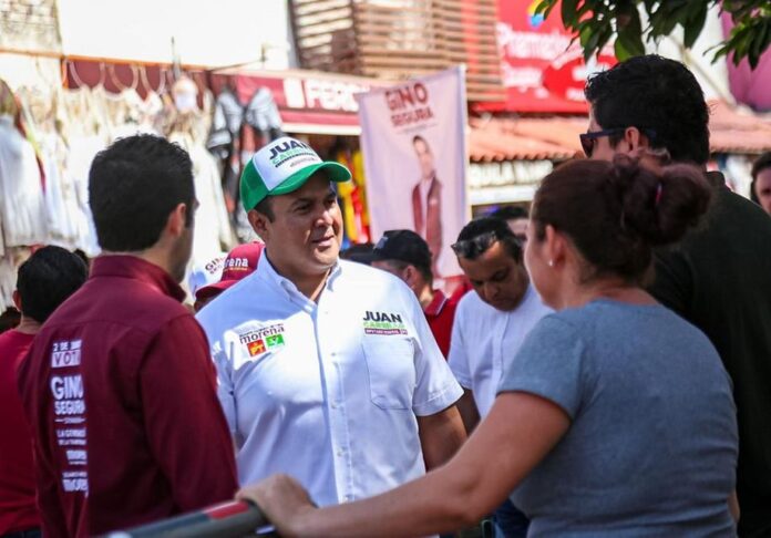 En su recorrido de este lunes en el que estuvo acompañado por Gino Segura, candidato al Senado por la coalición Sigamos Haciendo Historia, Juan Carrillo habló con los comerciantes de la zona turística y la zona urbana de Playa del Carmen, a quienes les que aseguró que buscará crear el marco legal que castigue con penas severas a quienes quiten el pan de la mesa de la gente trabajadora.