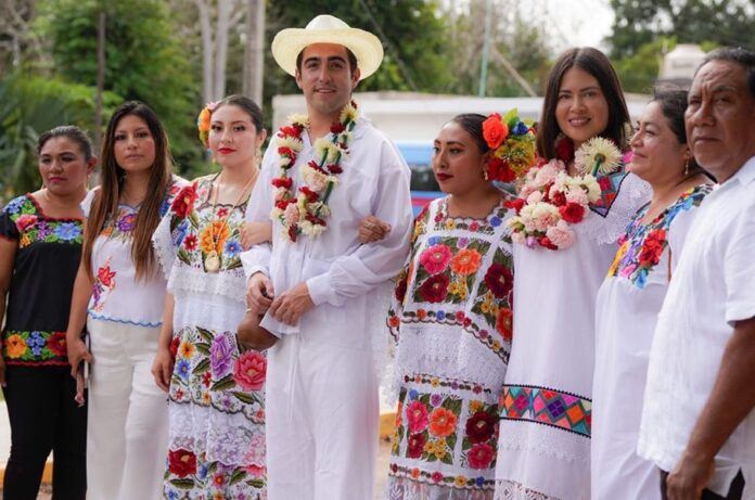 Felipe Carrillo Puerto, Quintana Roo, 4 de marzo de 2024.- Con entusiasmo y agradecimiento a los representantes mayas de Felipe Carrillo Puerto reciben al candidato a Senador por Quintana Roo, Gino Segura quien compartió con dignatarios mayas de la comunidad X-Yatil un ritual sagrado con el Gran Consejo Maya nombrándolo Nohoch Laak que significa hermano y que permite conectarse con las tradiciones y costumbres de nuestros antepasados.