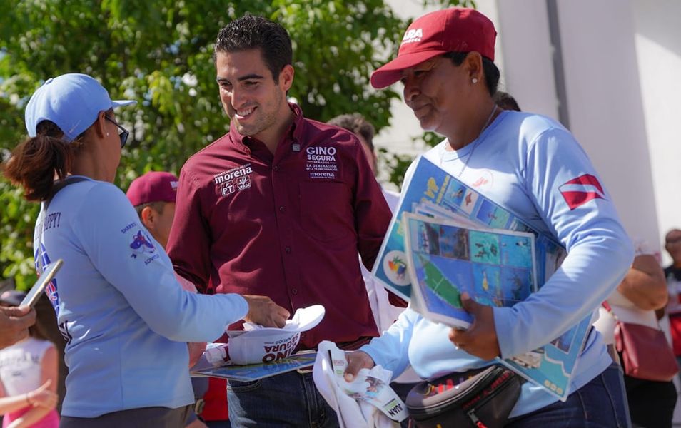 Para cerrar la tarde en Playa del Carmen, Gino Segura recorrió las calles de Puerto Aventuras junto a simpatizantes quienes gritaban al unísono su nombre.