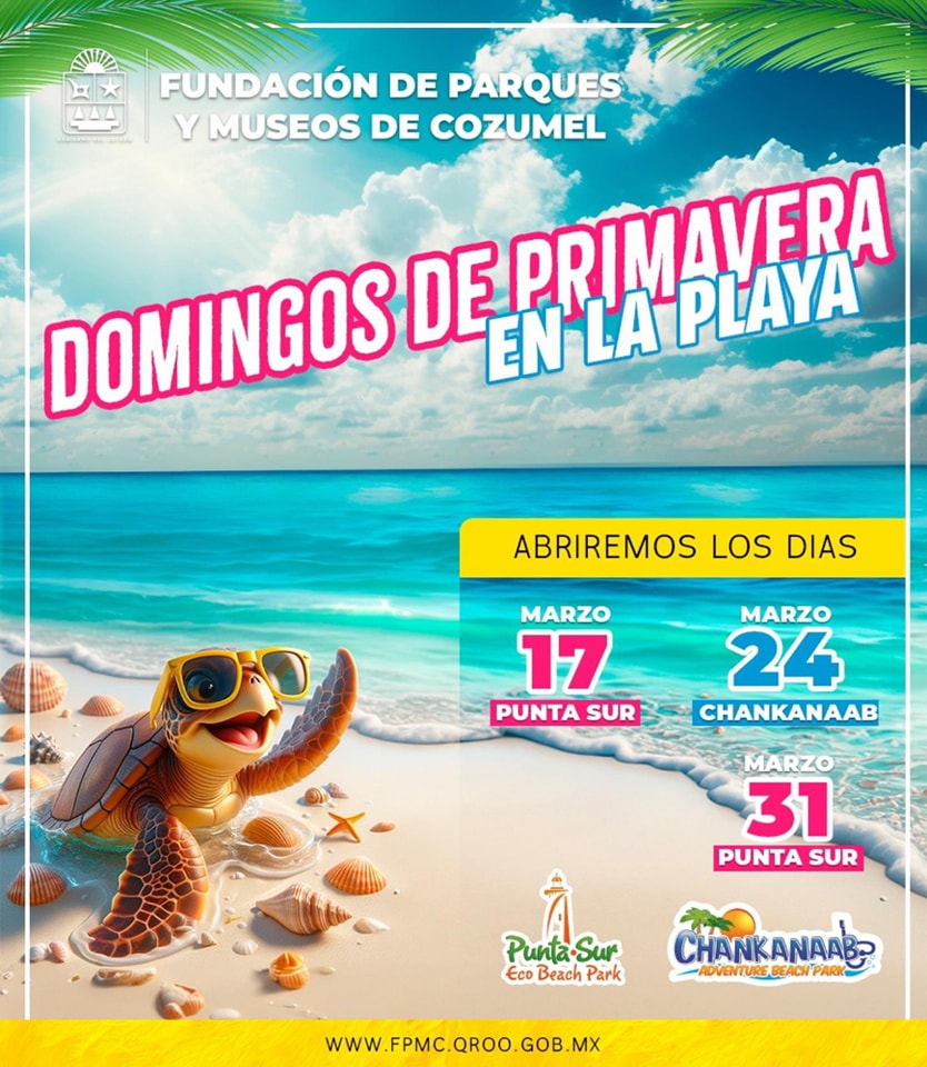 El director general de la Institución, Alejandro Marchán Payán, informó que los domingos 17 y 31 de marzo, abrirá al público el Parque Punta Sur, de nueve de la mañana a cuatro de la tarde, mientras que el día 24, será el turno del Parque Chankanaab, con un horario de ocho de la mañana a cuatro de la tarde, permitiendo a los visitantes disfrutar de las bellezas naturales, culturales y actividades recreativas que ofrecen estos espacios turísticos.