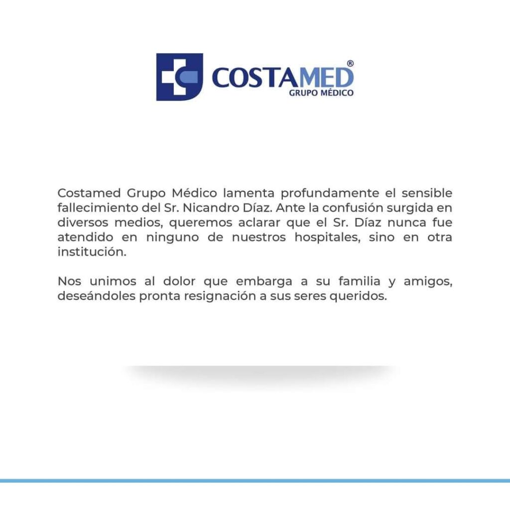Debido a las lesiones causadas por el accidente, Nicandro Díaz falleció este lunes, a la edad de 60 años. El anuncio fue oficializado a través del programa Hoy por la conductora Andrea Legarreta: «Nos duele mucho informar la muerte de nuestro querido Nicandro Díaz. Lo lamentamos muchísimo, de verdad, un hombre que hizo un gran camino en esta empresa, que empezó desde muy abajo, que luchó muchísimo por tener el gran nombre que logró como el productor, el amigo, el maestro y de verdad nos duele muchísimo dar esta noticia», externó.
