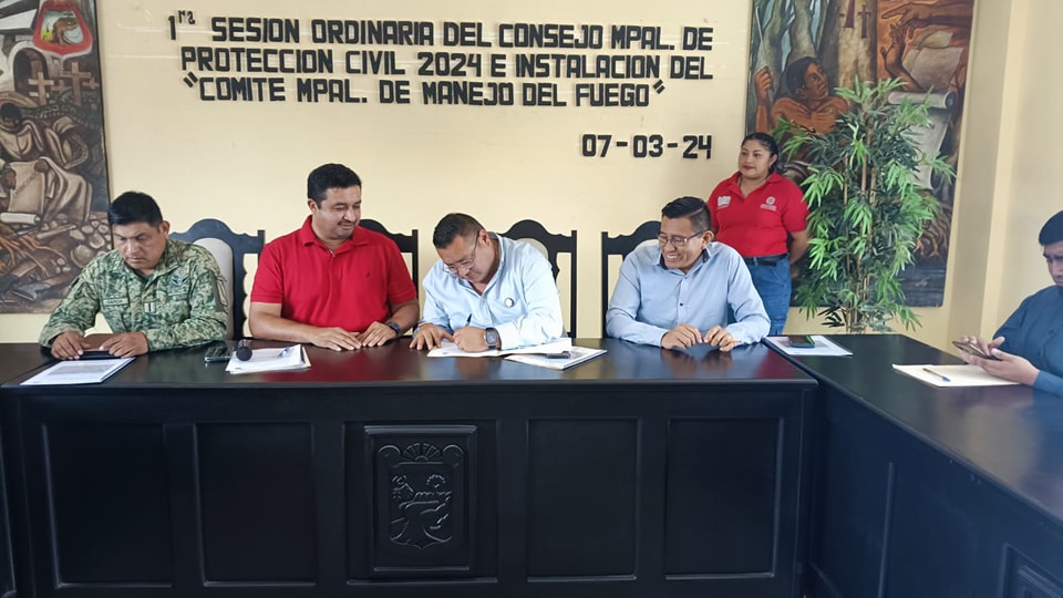 Felipe Carrillo Puerto, Quintana Roo, 7 de marzo de 2024. – En un evento realizado en el cabildo del municipio de Felipe Carrillo Puerto, el director general de la Coordinación Estatal Protección Civil, Guillermo Núñez Leal, asistió a la primera sesión ordinaria del Consejo Municipal de Protección Civil 2024, donde quedó instalado el Comité de Manejo de Fuego 2024.
