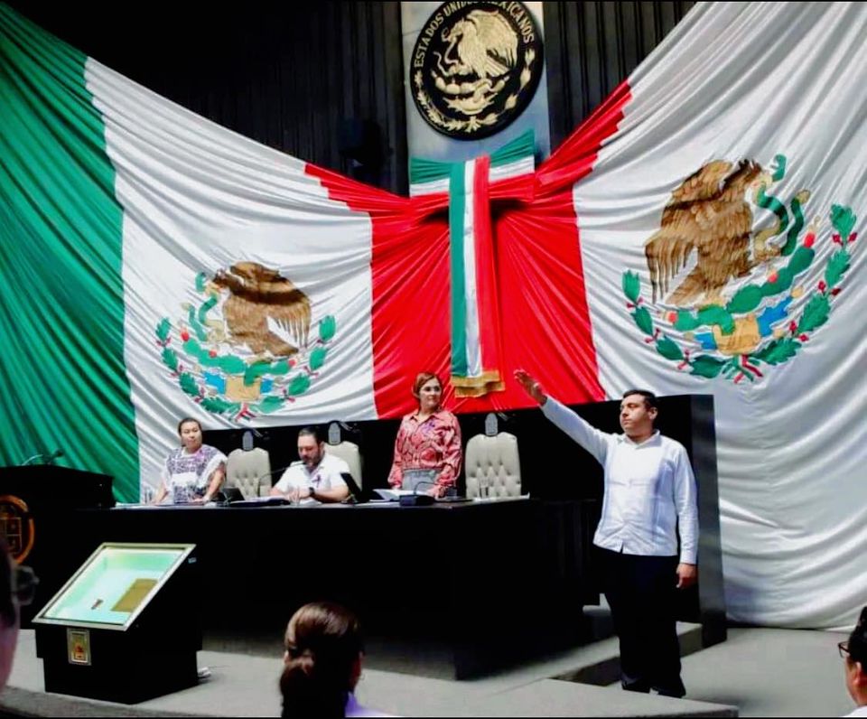 Chetumal, Quintana Roo, 9 de marzo de 2024.- Luis Ángel Gómez Balam tomó protesta como diputado de la XVII Legislatura del Congreso de Quintana Roo, representando al Distrito XI, con cabecera en el municipio de Cozumel, en su calidad de suplente del diputado con licencia, Renán Eduardo Sánchez Tajonar, quien se separó del cargo por 90 días, con la finalidad de contender en el proceso electoral de junio próximo.