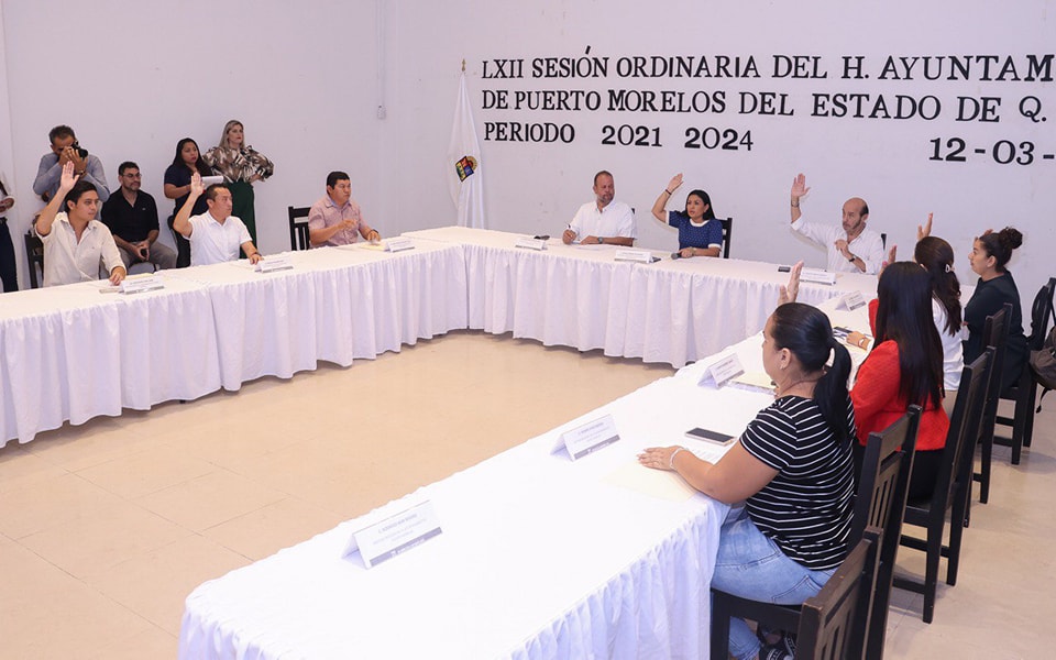Puerto Morelos, Quintana Roo, 12 de marzo de 2024.– En el marco de su LXII Sesión Ordinaria, el Cabildo de Puerto Morelos tomó hoy protesta a tres nuevos integrantes, suplentes de igual número de ediles que solicitó y obtuvo licencia.