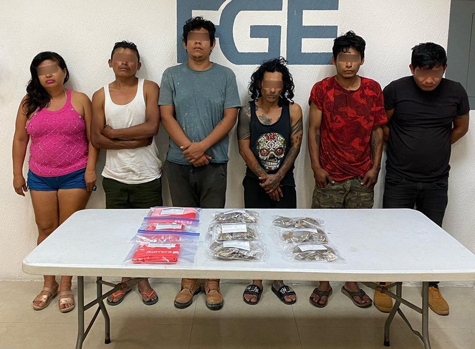 Cerca de donde se llevó a cabo la acción mencionada, los agentes detuvieron en flagrancia a seis personas: Félix “N”, Manuel “N”, César Alberto “N”, Brayan Ricardo “N”, Eder Alfredo “N” y Rosy Mayra “N”. A todos ellos les aseguraron bolsitas con vegetal verde y seco parecido a la marihuana.